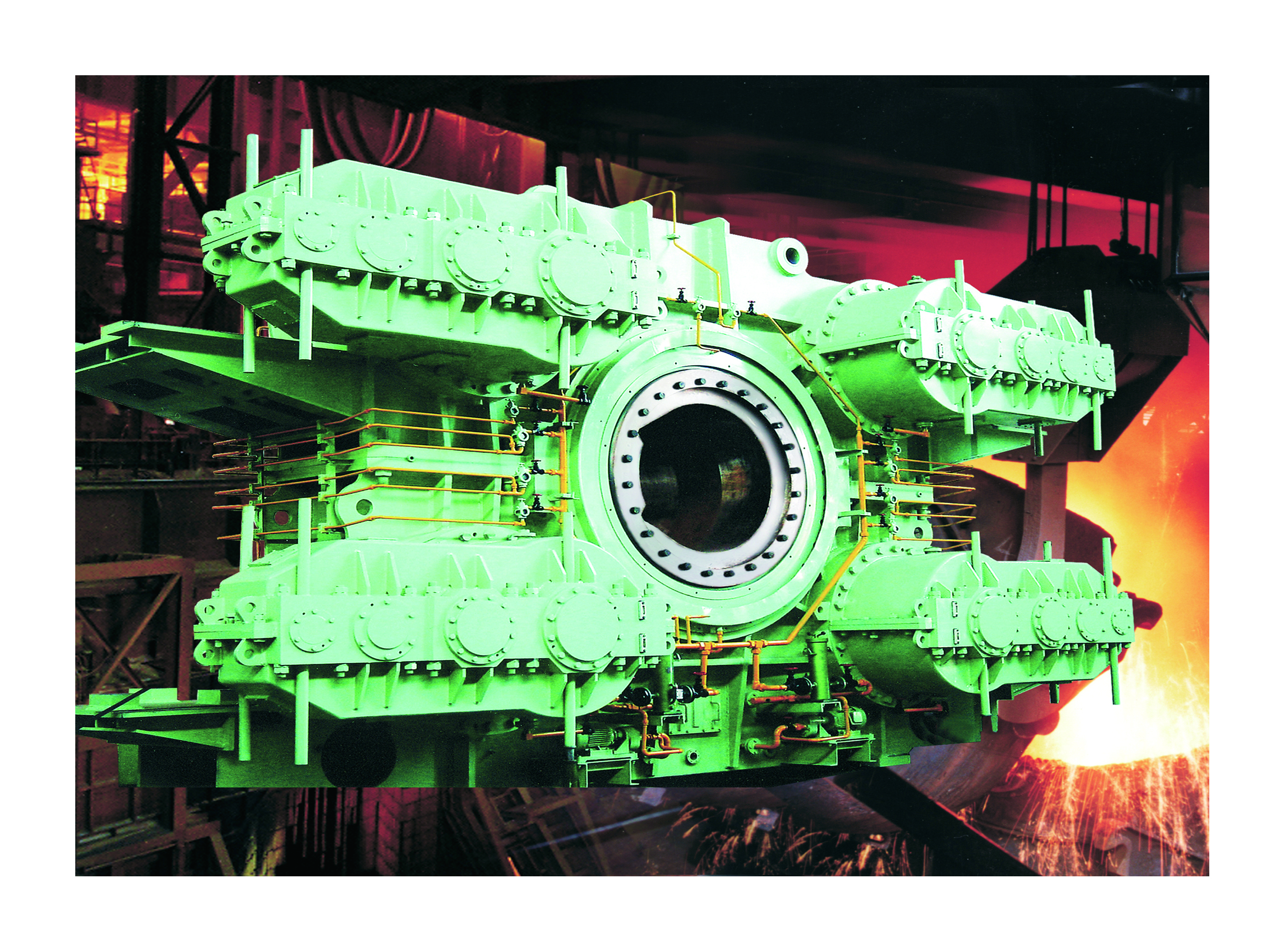 轉(zhuǎn)爐傾動裝置為煉鋼轉(zhuǎn)爐的驅(qū)動機構(gòu),用于氧氣頂吹轉(zhuǎn)爐煉鋼設(shè)備中爐體的平穩(wěn)傾動及準確定位,采取全懸掛型式、多點嚙合柔性支承傳動,能使爐體連續(xù)360度正反轉(zhuǎn),并能準確平穩(wěn)地停止在任意角度位置,以滿足兌鐵水、裝料、取樣、測溫、出鋼、出渣以及返回等煉鋼工藝操作;還可以與吹氧管、煙罩提升機構(gòu)等操作保持一定的連鎖關(guān)系;是實現(xiàn)轉(zhuǎn)爐煉鋼生產(chǎn)的關(guān)鍵設(shè)備之一。