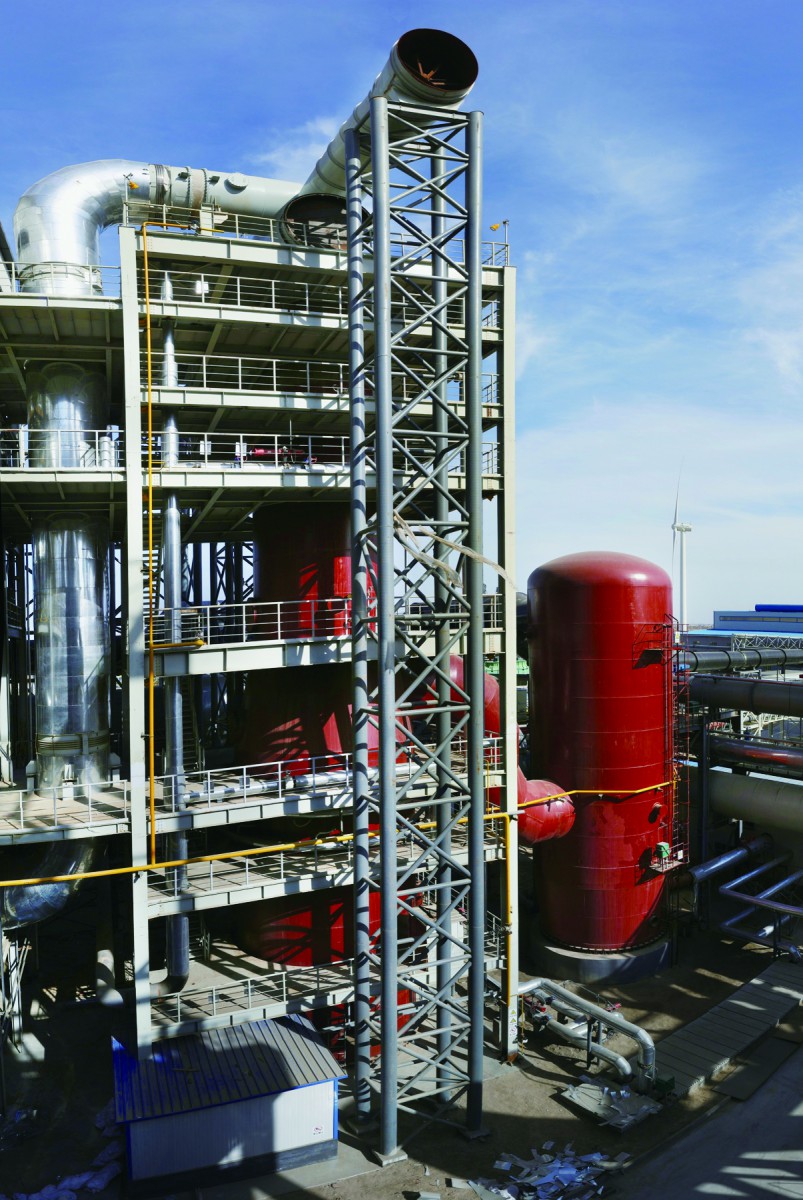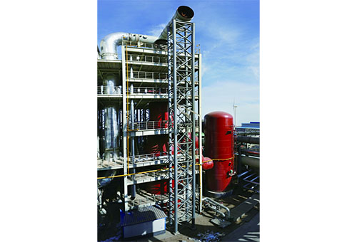 環(huán)縫洗滌裝置,是一種氣體降溫、除塵、除霧裝置。該設(shè)備包含環(huán)縫洗滌塔和脫水器,其中,環(huán)縫洗滌塔主要由預(yù)清洗段、環(huán)縫段和液壓系統(tǒng)組成,設(shè)備規(guī)格為Φ6500/Φ5000mm。脫水器設(shè)備規(guī)格為Φ7000mm。