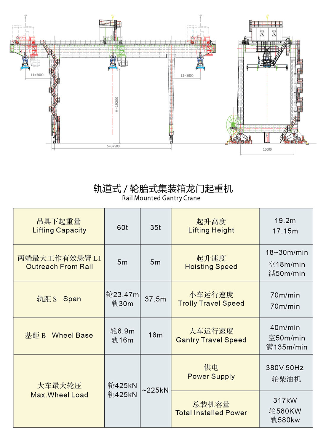 軌道式集裝箱龍門起重機(jī),是集裝箱碼頭和中轉(zhuǎn)站貨場(chǎng)進(jìn)行裝卸、搬運(yùn)和堆碼集裝箱的專用機(jī)械。機(jī)構(gòu)類似于輪胎式場(chǎng)橋。只是在專門鋪設(shè)的鋼軌上行走。可按滾裝發(fā)運(yùn)的方式向客戶提供所需的軌道式集裝箱門龍門起重機(jī)。