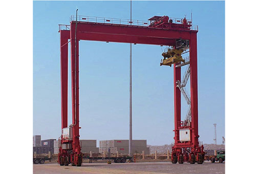 簡稱輪胎式場橋,是集裝箱碼頭堆場或集裝箱貨場進(jìn)行堆碼作業(yè)的專用裝卸機械,主要由起升機構(gòu)、小車行走機構(gòu)、大車行走機構(gòu)組成。包含兩個U型門框與底梁組成門式架,支承在充氣橡膠輪胎上,可在規(guī)定的行車通道上行走。可按滾裝發(fā)運的方式向客戶提供所需的輪胎式集裝箱門式起重機。