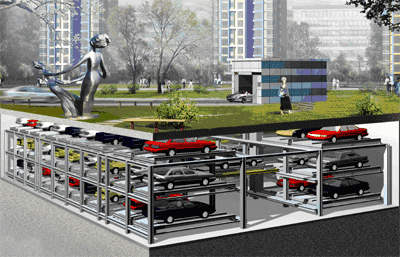 PPY平面移動(dòng)類機(jī)械式停車設(shè)備是在同一水平層上用搬運(yùn)器平面移動(dòng)汽車或載車板,多層之間是靠升降機(jī)來(lái)實(shí)現(xiàn)不同層之間的轉(zhuǎn)換,實(shí)現(xiàn)汽車的存取。