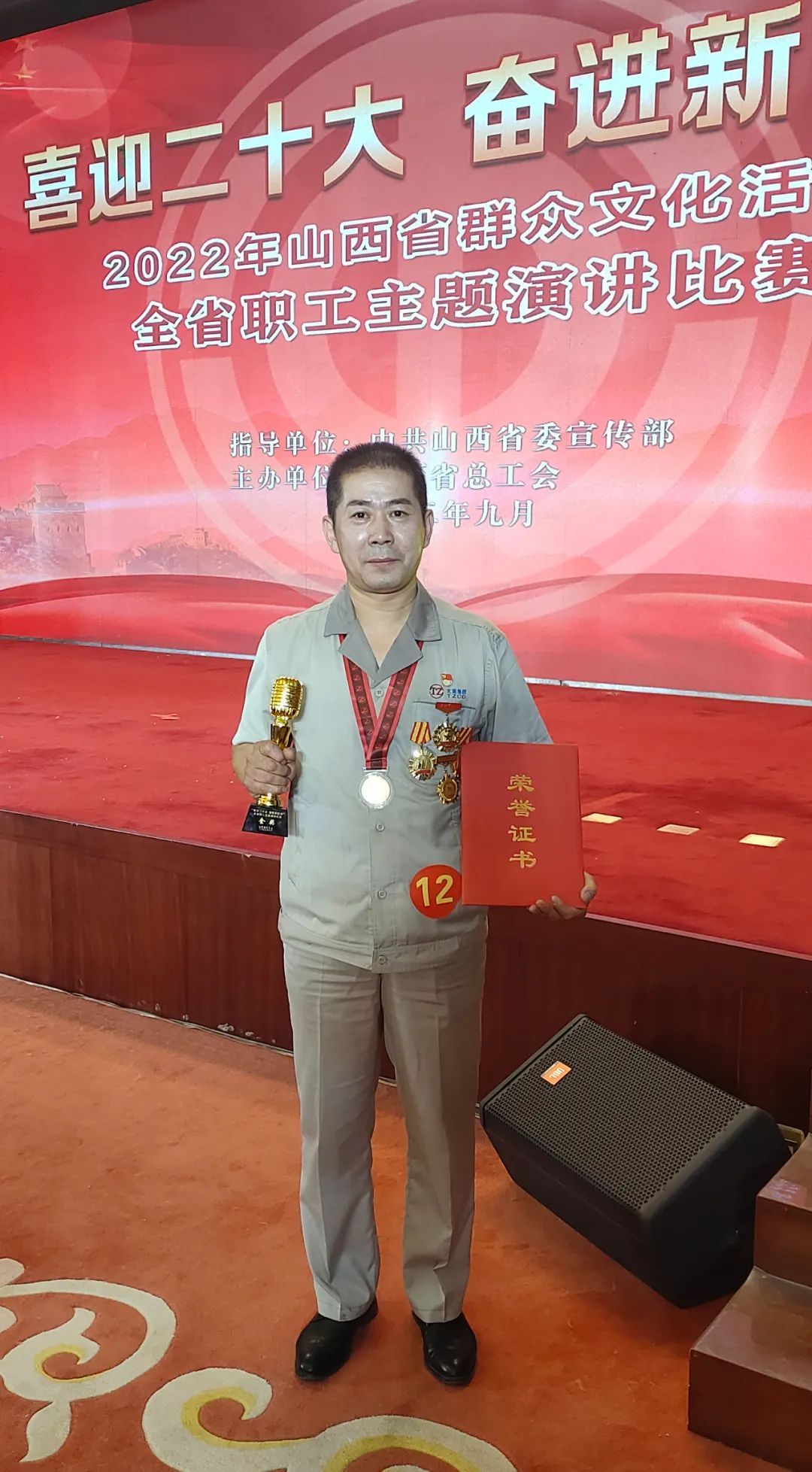 9月23日,“喜迎二十大 奮進新征程”2022年山西省群眾文化活動全省職工主題演講比賽總決賽在省總機關(guān)舉行,集團公司礦山分公司車工組組長陳賓在此次比賽中以9.93分的高分喜獲個人金獎第一名。