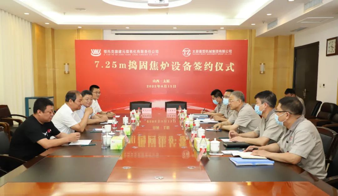 8月15日,太重集團(tuán)與鄂托克旗建元煤焦化有限責(zé)任公司舉行7.25米搗固焦?fàn)t設(shè)備合作簽約儀式。這是繼6.25米后,太重集團(tuán)為該公司提供的第7套分體搗固焦?fàn)t設(shè)備。集團(tuán)公司黨委書記、董事長(zhǎng)韓珍堂與鄂托克旗建元煤焦化有限責(zé)任公司董事長(zhǎng)樊三維分別代表雙方進(jìn)行簽約。