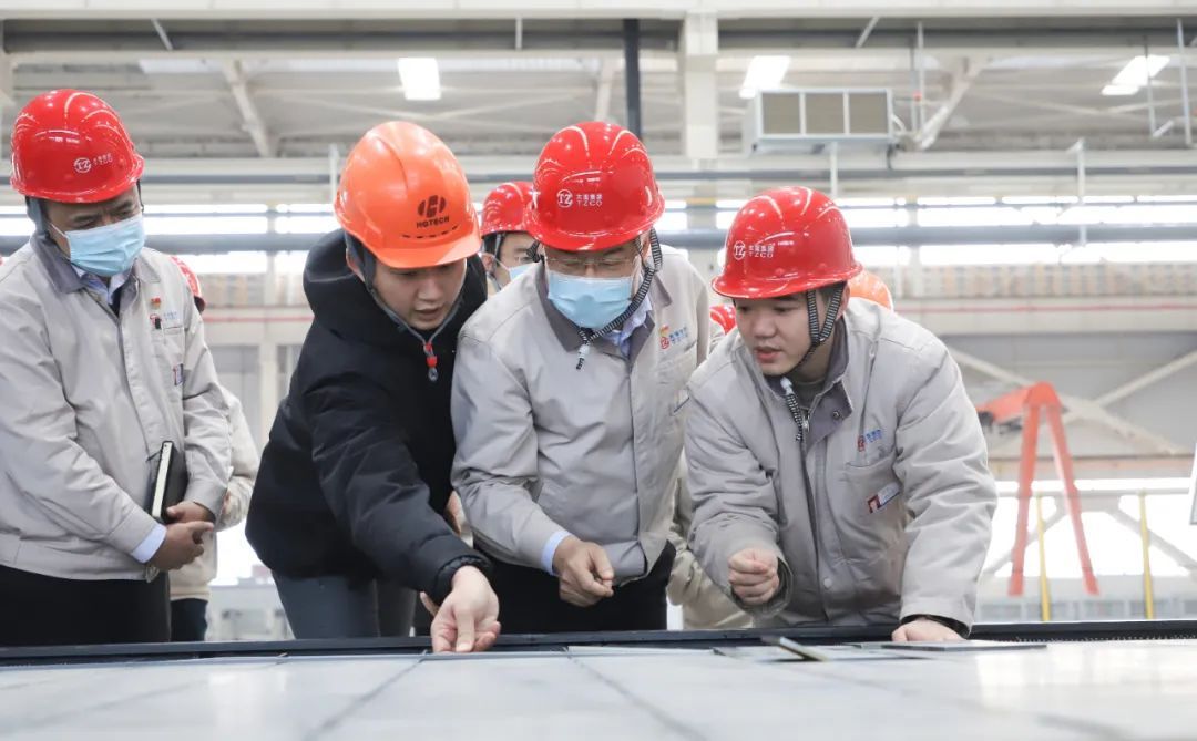 在激光切割機(jī)、拋丸機(jī)、矯平機(jī)等關(guān)鍵設(shè)備前,韓珍堂駐足察看、仔細(xì)詢問,并圍繞項(xiàng)目進(jìn)度、工藝流程等提出具體要求。他指出,要切實(shí)做好設(shè)備單機(jī)驗(yàn)收、功能考核、達(dá)產(chǎn)驗(yàn)證方案評(píng)審等工作,不斷提高職工能力本領(lǐng),確保設(shè)備快速掌握、順利接手,同時(shí),統(tǒng)籌協(xié)調(diào)各方資源,充足備品備料,以萬全準(zhǔn)備確保萬無一失,全力推動(dòng)達(dá)產(chǎn)達(dá)效。要加快完善產(chǎn)線數(shù)智化進(jìn)程,持續(xù)推動(dòng)大數(shù)據(jù)、人工智能、機(jī)器人、視覺識(shí)別等先進(jìn)技術(shù)的深度融合,在自動(dòng)化、信息化、智能化方面下真功夫、下實(shí)功夫、下苦功夫,團(tuán)結(jié)協(xié)作打造“燈塔工廠、智能工廠、黑燈工廠”典范。