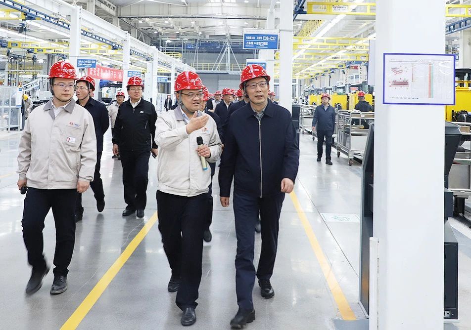 聯(lián)合車間內(nèi),智能焊接機(jī)器人各司其職,AGV小車來往穿梭,各領(lǐng)域產(chǎn)品部件整齊擺放,多工序作業(yè)人員高效協(xié)同。范兆森先后對液壓挖掘機(jī)的焊接、機(jī)加工、涂裝、裝配制造流程進(jìn)行了解,詢問了太重在智能制造、科技創(chuàng)新、綠色環(huán)保以及延鏈補(bǔ)鏈建鏈強(qiáng)鏈等方面所做的工作和取得的成效,對看到的智能化、信息化、精細(xì)化管理細(xì)節(jié)表示稱贊。他強(qiáng)調(diào),為企業(yè)紓困解難是義不容辭的責(zé)任,綜改示范區(qū)將不斷提高站位,加強(qiáng)服務(wù)保障力度,進(jìn)一步整合資源、精準(zhǔn)發(fā)力,加大對企業(yè)創(chuàng)新支持力度,助力產(chǎn)業(yè)項(xiàng)目早日達(dá)產(chǎn)達(dá)效。同時(shí),將結(jié)合企業(yè)現(xiàn)實(shí)需求和長遠(yuǎn)發(fā)展需要,大力支持園區(qū)生產(chǎn)生活和生態(tài)環(huán)境配套設(shè)施完善,助力企業(yè)開展園區(qū)綠化、環(huán)境治理等各項(xiàng)工作,持續(xù)提升產(chǎn)業(yè)項(xiàng)目的含金量、含新量、含綠量。希望太重繼續(xù)發(fā)揚(yáng)艱苦奮斗、開拓進(jìn)取的精神,全力攻堅(jiān)“卡脖子”技術(shù)難題,搶占產(chǎn)業(yè)發(fā)展的制高點(diǎn),打造更多國之重器。陶家晉對綜改示范區(qū)長期以來的高度關(guān)注和大力支持表示感謝。他指出,近年來,太重作為我省裝備制造業(yè)的龍頭企業(yè),以“做強(qiáng)傳統(tǒng)產(chǎn)品、做優(yōu)轉(zhuǎn)型產(chǎn)品、做大批量產(chǎn)品”為方向,全力推動(dòng)產(chǎn)業(yè)轉(zhuǎn)型升級,建設(shè)世界上單一工廠規(guī)模最大、工序最全的挖掘機(jī)智慧工廠,實(shí)現(xiàn)產(chǎn)業(yè)布局不斷優(yōu)化,產(chǎn)能規(guī)模持續(xù)提升。同時(shí),公司圍繞高端化、智能化、綠色化、國產(chǎn)化產(chǎn)品發(fā)展方向,研發(fā)了多種新能源動(dòng)力裝備,為產(chǎn)業(yè)鏈綠色健康發(fā)展提供了有力支撐。公司將積極配合綜改示范區(qū)做好各項(xiàng)工作,搶抓市場機(jī)遇,強(qiáng)化技術(shù)引領(lǐng),為推動(dòng)山西制造業(yè)振興升級、建設(shè)中部地區(qū)先進(jìn)制造業(yè)基地作出更大貢獻(xiàn)。公司相關(guān)單位負(fù)責(zé)人陪同調(diào)研。