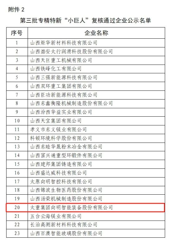 太原重工軌道交通設備有限公司成功入選第六批專精特新“小巨人”企業(yè),這是軌道公司繼2022年入選山西省專精特新企業(yè)后,完成的又一次榮譽進階。如果說“燈塔工廠”是行業(yè)標桿引領,那這份來自國家級的認可同樣分量十足。此外,在此次的名單中,太重集團向明智能裝備股份有限公司順利通過第三批專精特新“小巨人”企業(yè)復核。