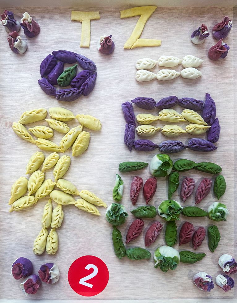 比賽現(xiàn)場,職工們擼起袖子,干勁十足。他們搟皮拌餡,左手拱起餃子皮,右手用筷子夾起餡料往里一放,十指翻飛間,一個餃子已躍然眼前。大家各顯神通,用富有創(chuàng)意的拼色、造型將餃子裝扮得五彩斑斕,呈現(xiàn)出各式各樣的可愛模樣,整個賽場暖意融融、歡聲笑語。