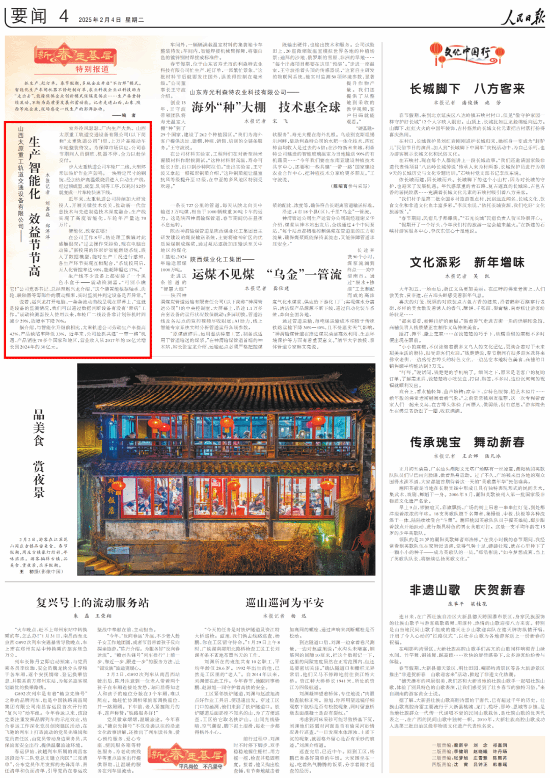 新春伊始,萬象更新,太重以亮眼開局備受矚目,榮登媒體熱榜。生產智能化、效益節(jié)節(jié)高!2月4日,人民日報《新春走基層·特別報道》走進軌道交通行業(yè)首座“燈塔工廠”——太重軌道公司車輪廠二線,感受智能化生產的澎湃脈動。數據見證非凡成就:勞動生產率提高43%,產品缺陷率降低33%,營業(yè)收入從2017年的18億元增長到2024年的30億元,清晰勾勒出太重向智能化大步邁進、效益持續(xù)上揚的堅實步伐。2月5日,山西新聞聯(lián)播《節(jié)后上班首日 我省各地奮進“春天里”》欄目也將鏡頭對準太重工程起重機項目建設現場,工人們忙碌而有序,大型機械轟鳴作響,努力打造高端裝備制造雙鏈雙千億產業(yè)集群,彰顯太重人奮進爭先的蓬勃朝氣與豪邁干勁!春啟新程,開局沖刺!2025,讓我們以奮斗之名,攜手共進,續(xù)寫太重新的輝煌!
