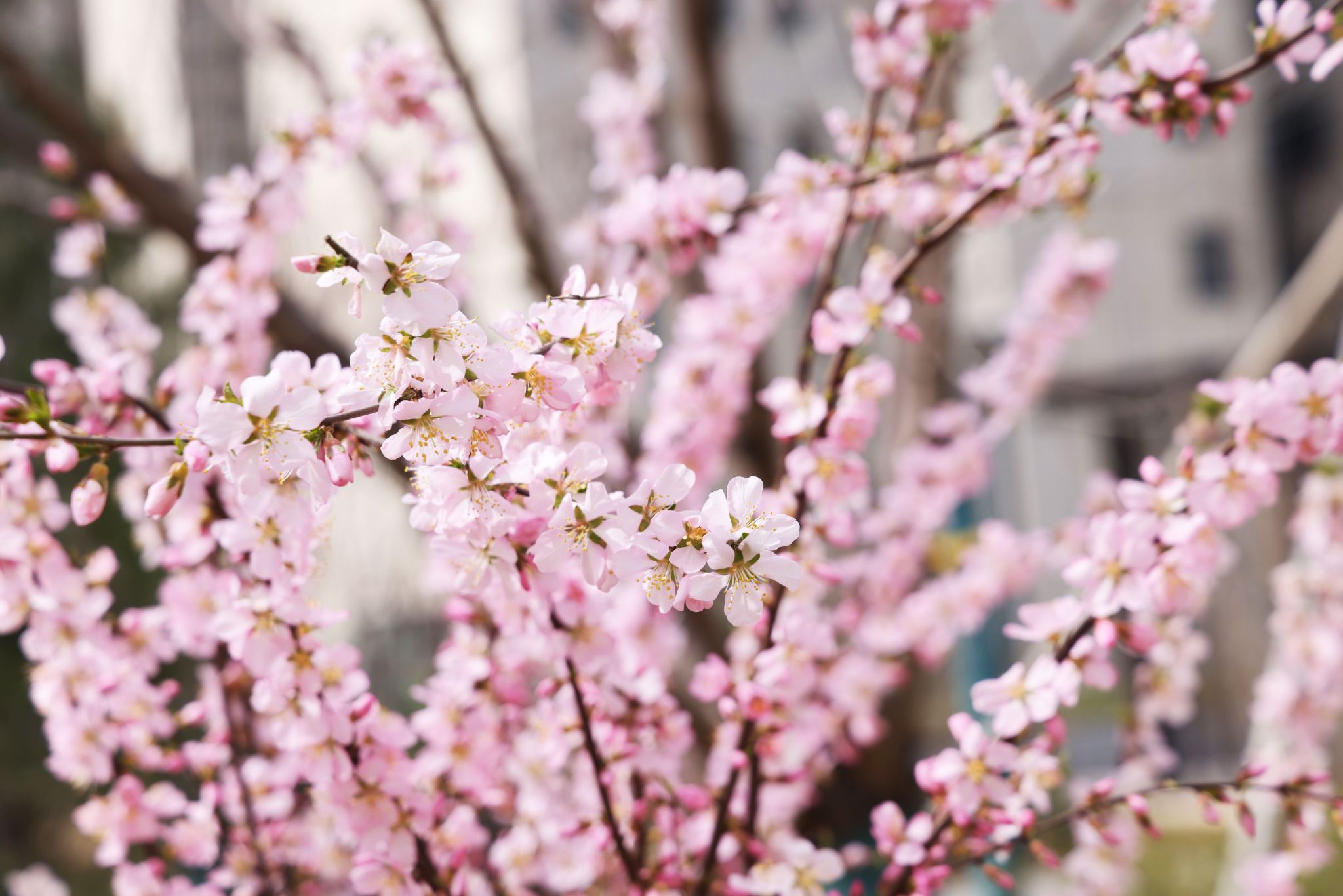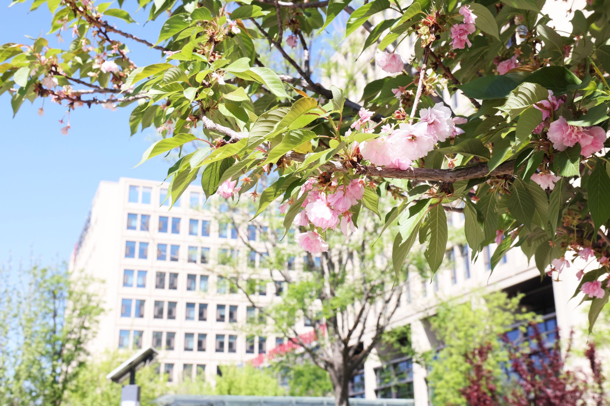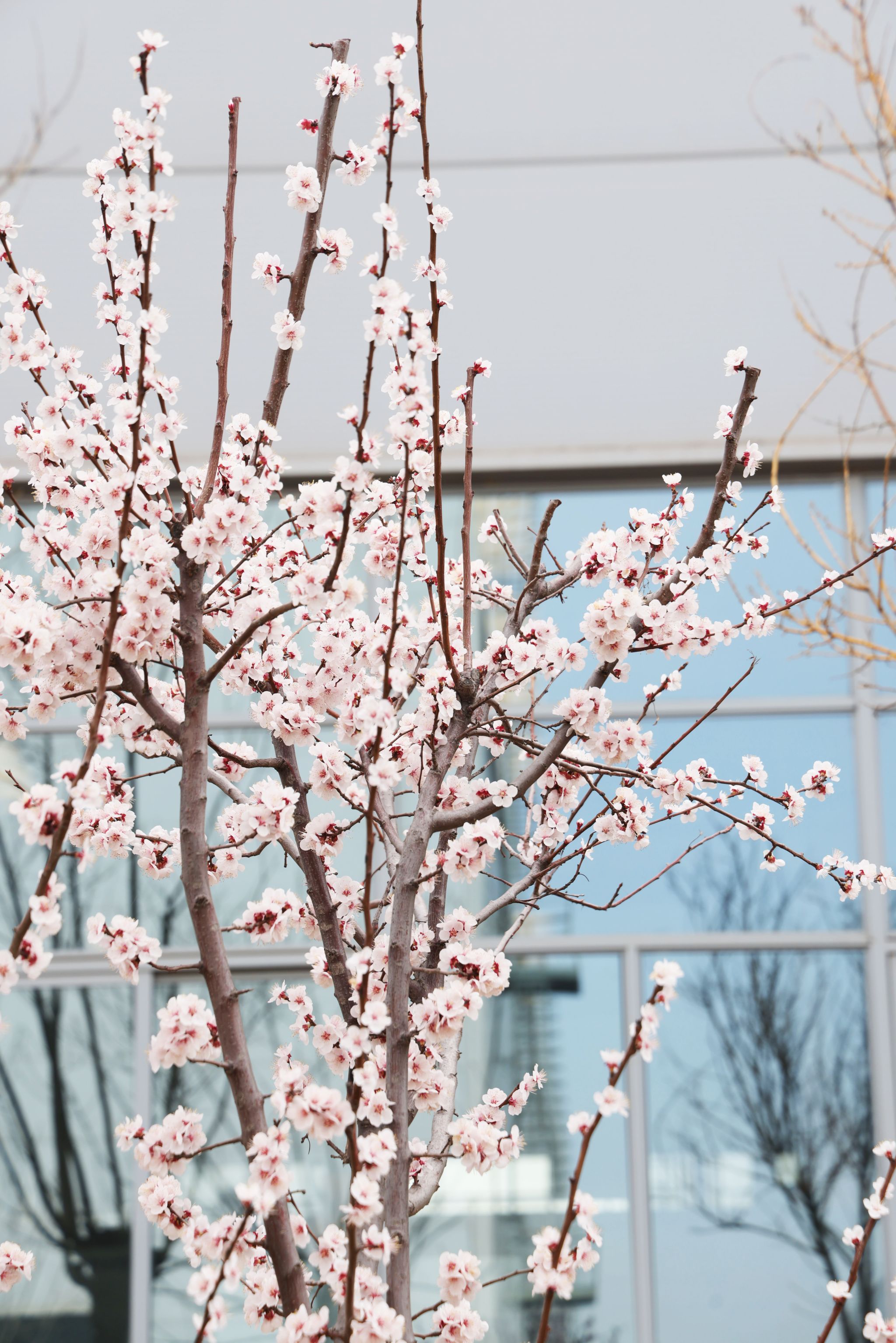 當(dāng)榆葉梅與焊接弧光爭相綻放