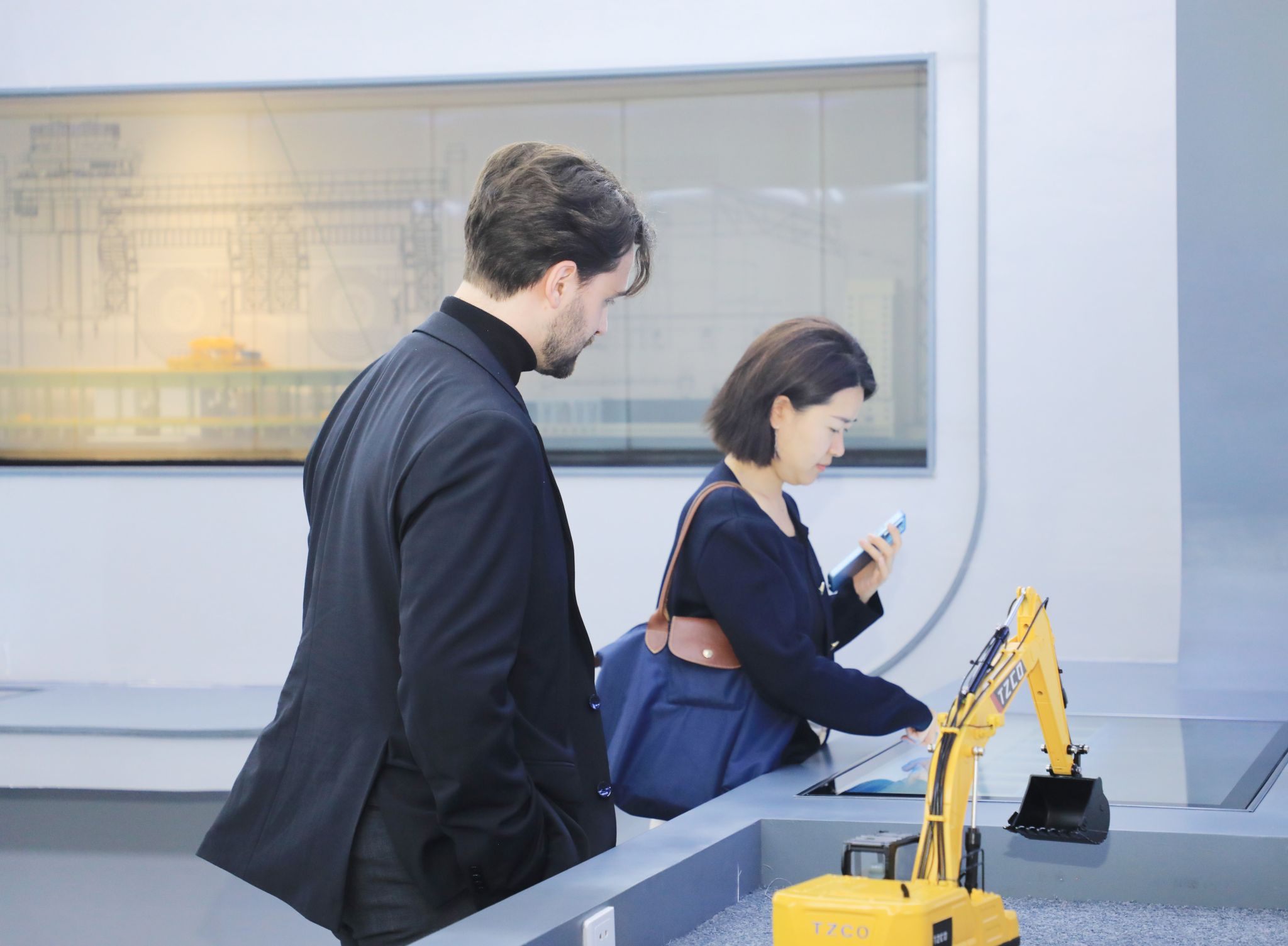 參觀過(guò)程中,代表團(tuán)一行沿著太重75年的發(fā)展長(zhǎng)廊,深入了解了公司推動(dòng)重型機(jī)械與工程機(jī)械融合發(fā)展的轉(zhuǎn)型過(guò)程。宣傳片《國(guó)之太重》中,一系列高端裝備讓代表團(tuán)直觀感受“大國(guó)重器”的科技含量;在發(fā)射塔架模擬演示區(qū),不少成員舉起手機(jī)記錄這一場(chǎng)景;在5G遠(yuǎn)程操作挖掘機(jī)演示區(qū),大家實(shí)地操作,親眼見(jiàn)證重型機(jī)械在數(shù)字化加持下精準(zhǔn)完成挖掘、行走、卸載等一系列動(dòng)作,紛紛點(diǎn)頭稱贊。期間,大家相互探討、深入交流、不時(shí)詢問(wèn),結(jié)下友誼、留下機(jī)會(huì)。