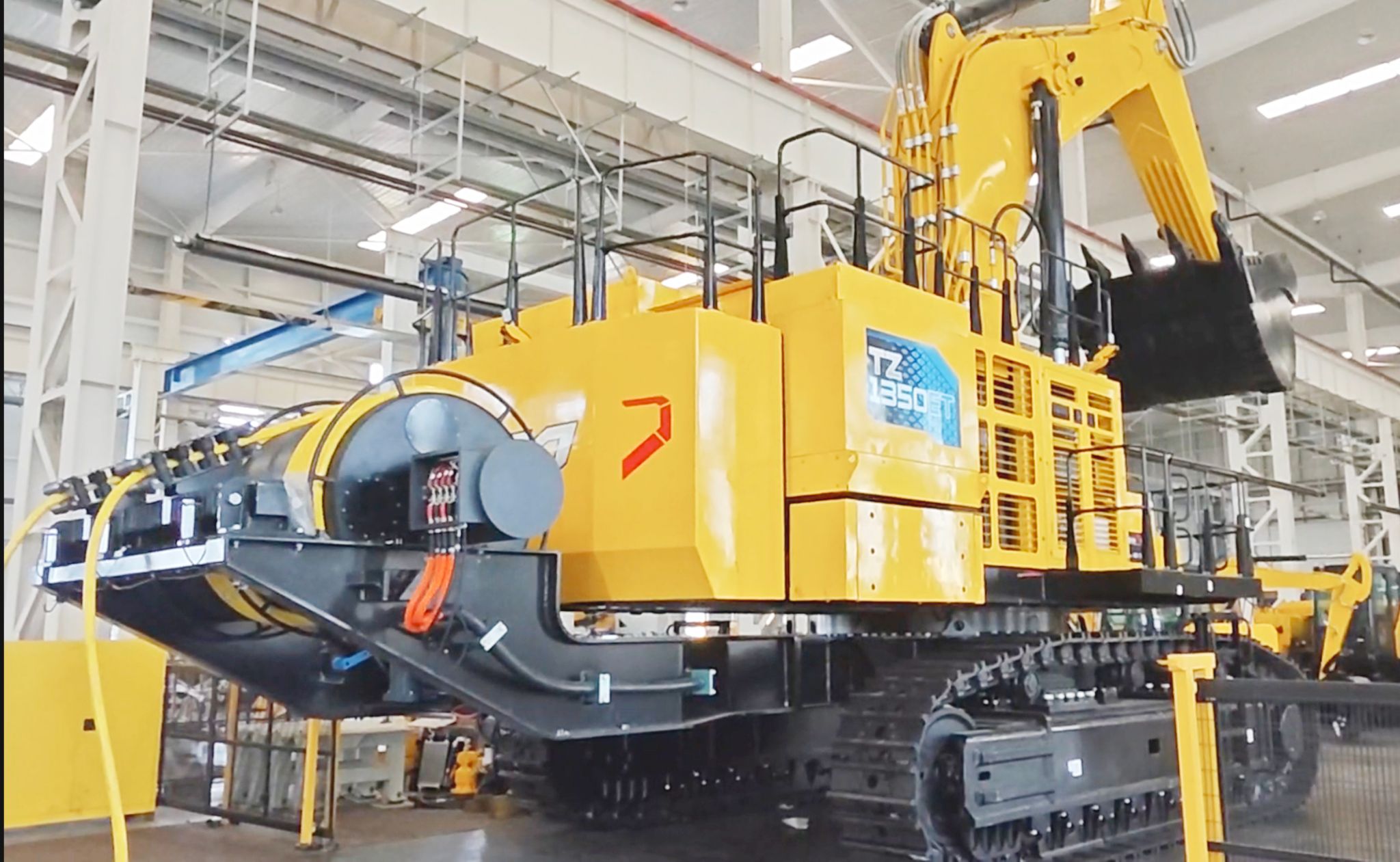 “TZ1350ET,成功下線!”近日,太重智能高端工程挖掘機(jī)產(chǎn)業(yè)園區(qū)再次迎來一位重量級選手——行業(yè)首創(chuàng)135噸級甲醇拖電混動液壓挖掘機(jī)。它身披明黃色外衣,擎動鋼鐵巨臂,在眾人期待的目光下緩緩駛出,成為太重工程挖掘機(jī)“明星產(chǎn)品天團(tuán)”中的又一綠智尖兵。