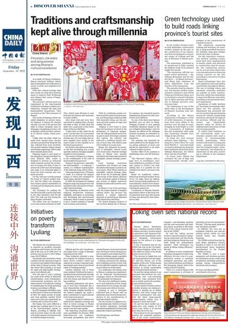 今天,《中國(guó)日?qǐng)?bào)》全英文刊發(fā)文章介紹太重集團(tuán)的7.25米搗固焦?fàn)t設(shè)備。