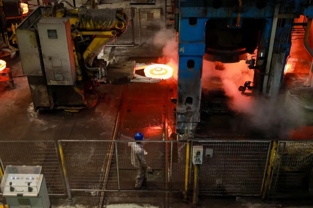 然后對切割好的鋼錠進(jìn)行加熱。加熱好之后,便可以進(jìn)行鍛造軋制了,通俗地說,就是“塑型”。