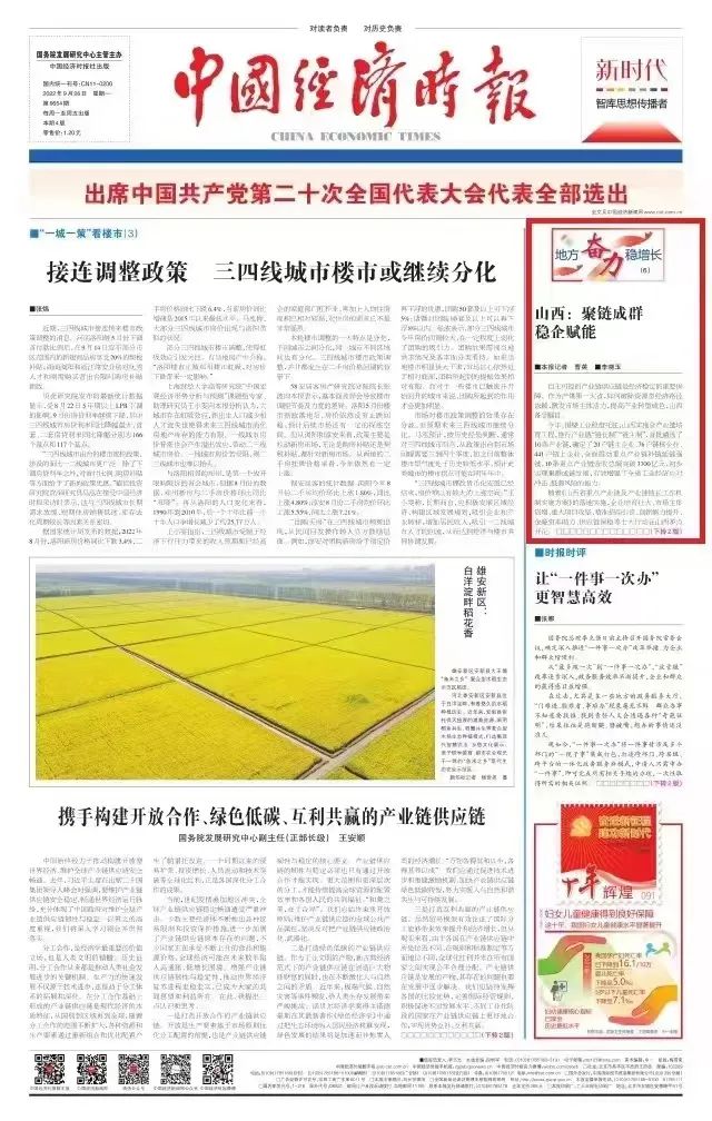 今日,中國經(jīng)濟(jì)時(shí)報(bào)頭版以《山西:聚鏈成群 穩(wěn)企賦能》為題,重點(diǎn)關(guān)注太重集團(tuán)憑借在高端裝備制造和風(fēng)電裝備領(lǐng)域的突出優(yōu)勢,成為山西省唯一的“雙鏈主”企業(yè),主動(dòng)發(fā)揮“鏈主”企業(yè)的引領(lǐng)支撐作用,精準(zhǔn)延鏈補(bǔ)鏈強(qiáng)鏈,推動(dòng)形成全省“一企帶一鏈、一鏈帶一片”的產(chǎn)業(yè)發(fā)展格局。