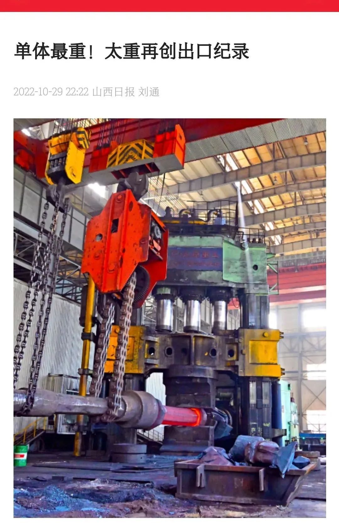 近日,山西日報以《單體最重!太重再創(chuàng)出口紀錄》為題,對太重集團高端裝備制造領域的新突破進行報道。太重集團堅持以“精細化、國際化、高端化、智能化”為方向,以智能制造、科技創(chuàng)新為動能,在轉型升級中展現新作為,積極履行好高端裝備制造產業(yè)鏈“鏈主”企業(yè)責任,持續(xù)加大關鍵核心技術攻關力度,為公司建設具有國際一流競爭力的現代智能裝備制造企業(yè)蓄勢賦能。