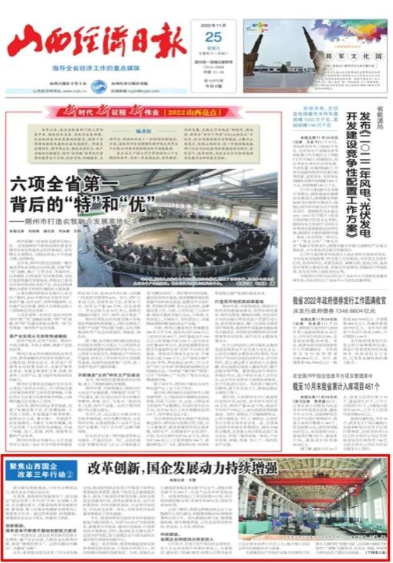 11月25日,山西經(jīng)濟(jì)日報(bào)頭版《聚焦山西國企改革三年行動(dòng)》專欄,刊發(fā)文章《改革創(chuàng)新,國企發(fā)展動(dòng)力持續(xù)增強(qiáng)》,報(bào)道太重集團(tuán)圍繞“雙碳”目標(biāo)要求,以“前瞻性、可靠性、先進(jìn)性”和“國產(chǎn)化、智能化、人性化、綠色化、輕量化”為目標(biāo),強(qiáng)化技術(shù)攻關(guān)力度,不斷提高焦化設(shè)備的環(huán)保技術(shù)、工藝、裝備水平,為我國焦化行業(yè)的轉(zhuǎn)型升級和持續(xù)發(fā)展奠定了基礎(chǔ),為助力國家實(shí)現(xiàn)“雙碳”目標(biāo)展現(xiàn)了國企擔(dān)當(dāng)。下面對太重集團(tuán)相關(guān)內(nèi)容進(jìn)行轉(zhuǎn)載。