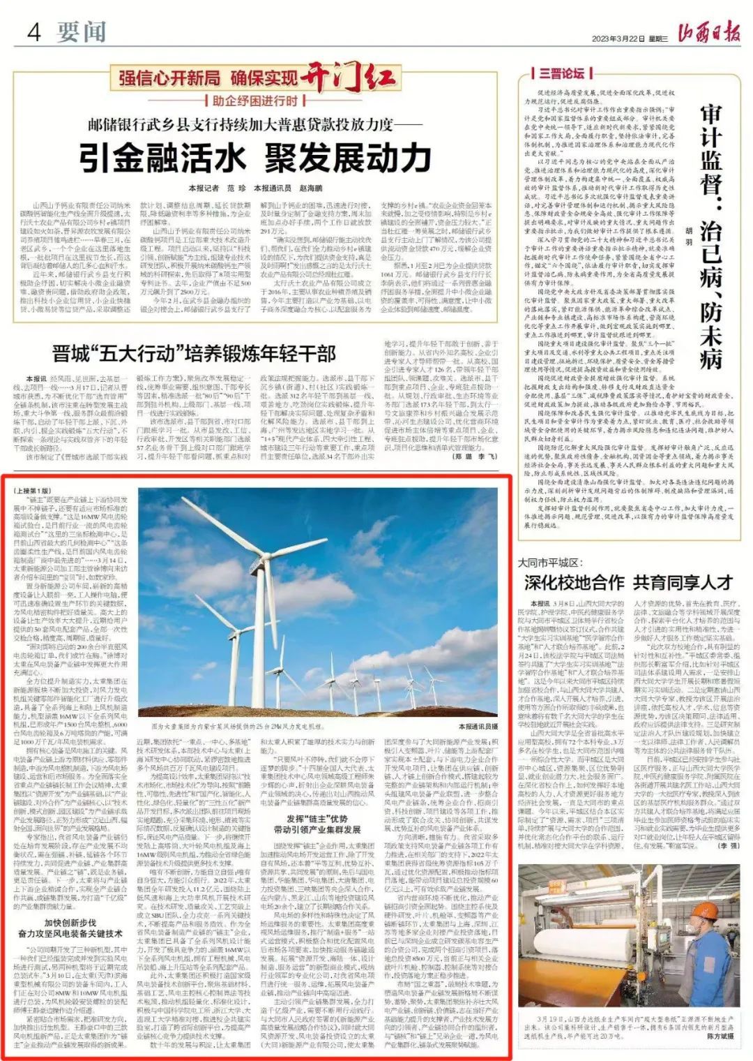 聞風而動 聚勢賦能!山西日報頭版關(guān)注太重風電產(chǎn)業(yè)集群化、鏈條式發(fā)展