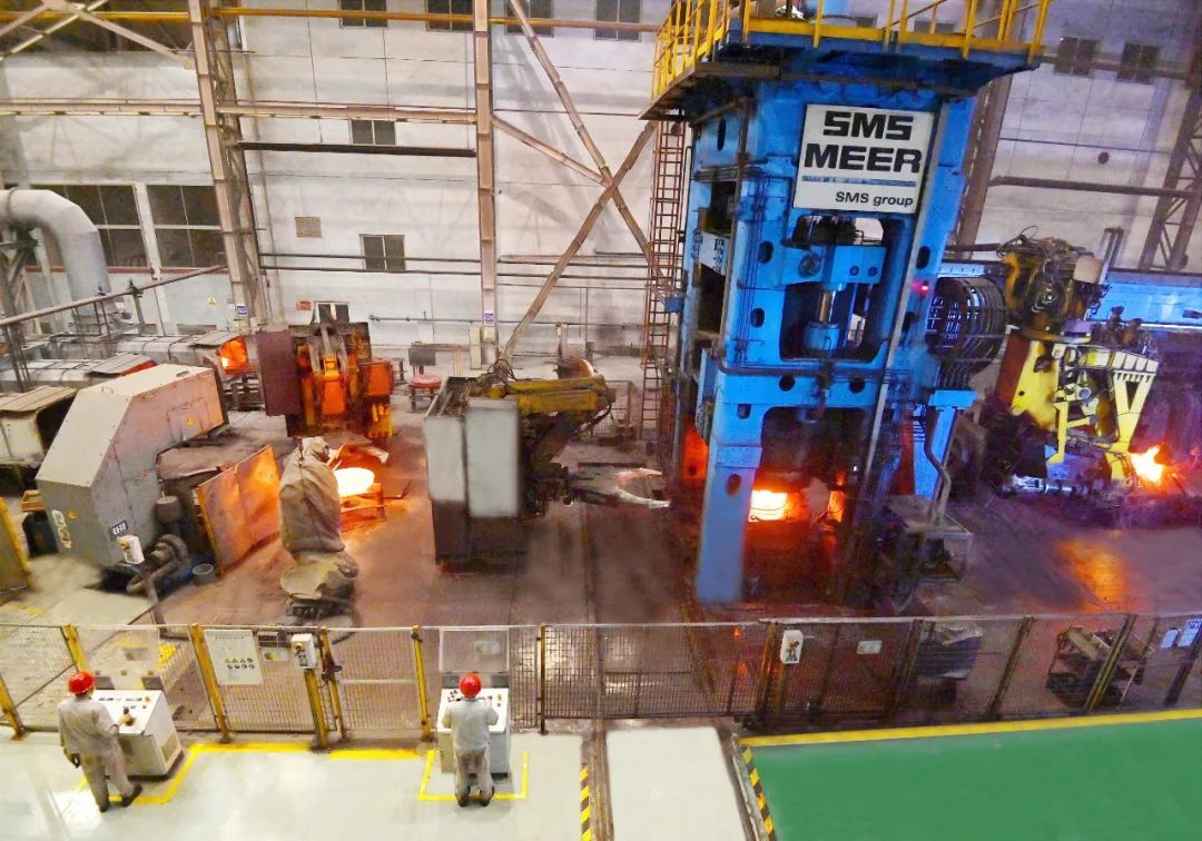 車輪廠二線鍛軋工部正在進行緊張的車輪鍛造任務,設備運維人員為準時制生產保駕護航