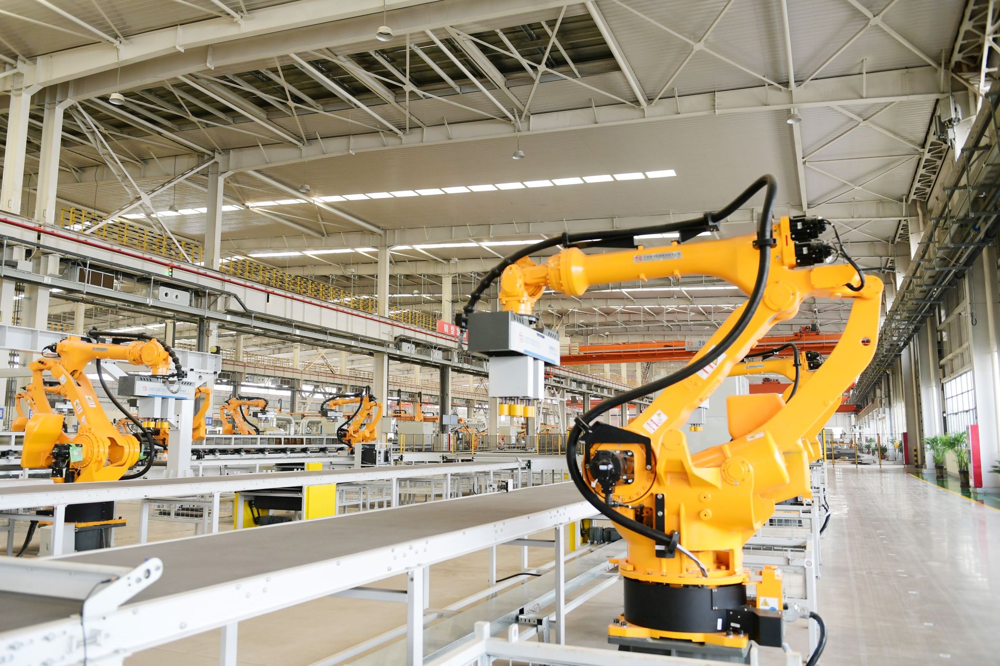 太重集團(tuán)工程起重機(jī)園區(qū)的智能剪叉裝配線。