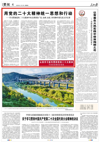 人民日報(bào)刊發(fā)的《用黨的二十大精神統(tǒng)一思想和行動(dòng)——學(xué)習(xí)貫徹黨的二十大精神中央宣講團(tuán)在廣東、山西、山東、四川和中國人民大學(xué)宣講》文章,對公司職工王永晶進(jìn)行了采訪報(bào)道。