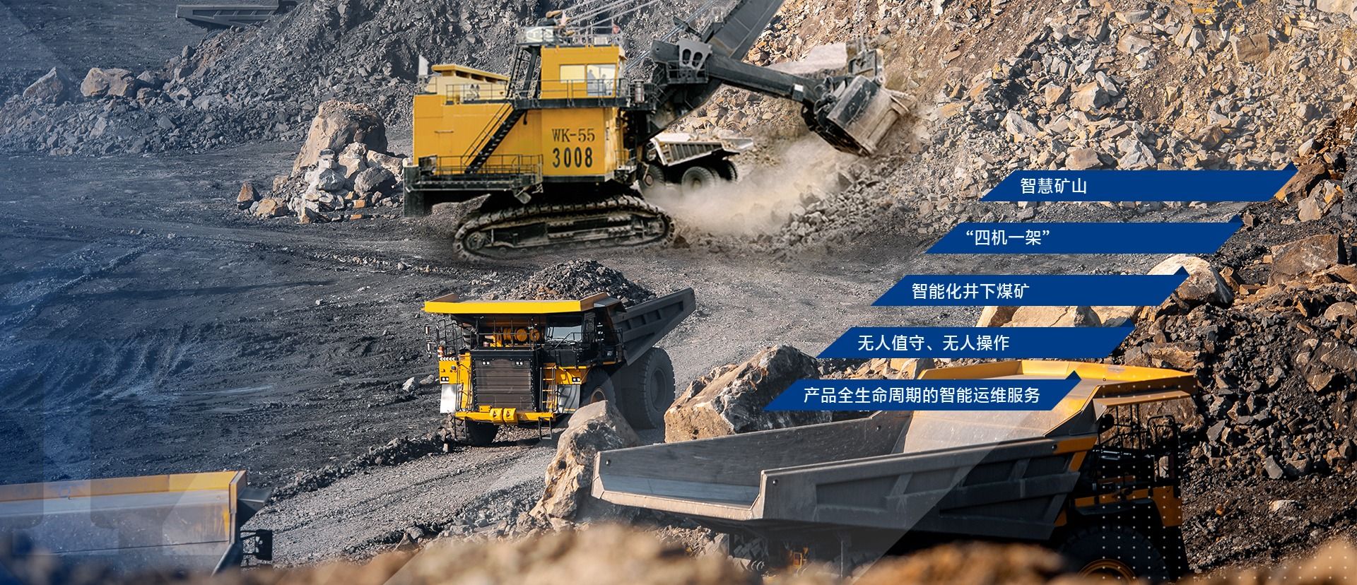公司可為露天礦用戶提供開(kāi)采、破碎、運(yùn)輸?shù)瘸商坠に囋O(shè)備及“一攬子”解決方案,為井工礦用戶提供“四機(jī)一架”5G智能綜采成套設(shè)備。致力于打造智慧礦山、智能化井下煤礦,實(shí)現(xiàn)露天和井工開(kāi)采的無(wú)人值守、無(wú)人操作以及產(chǎn)品全生命周期的智能運(yùn)維服務(wù)。